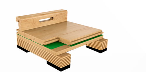 雙層龍骨結(jié)構(gòu)——(專業(yè)比賽之選)符合德國DIN標準,彈性、吸震性良好,適用于大型比賽場館
